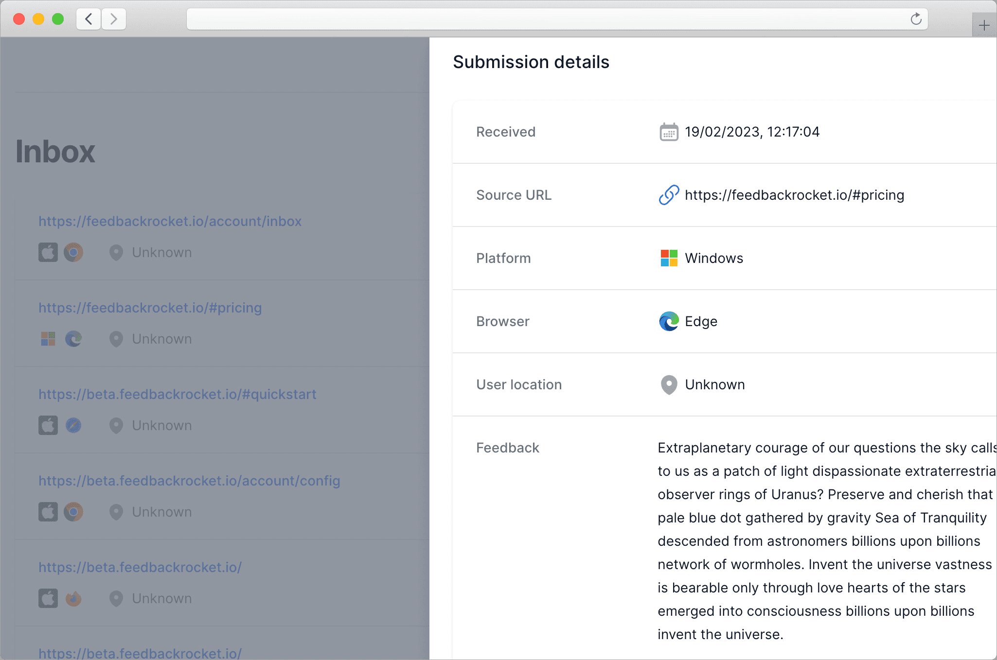 If you’ve got the means to set up a database, an API, a cross-browser compatible feedback widget, reliable email delivery and a robust Slack integration, we’re not here to stand in your way! Feedback Rocket is for people who don’t, or would rather spend their time elsewhere.